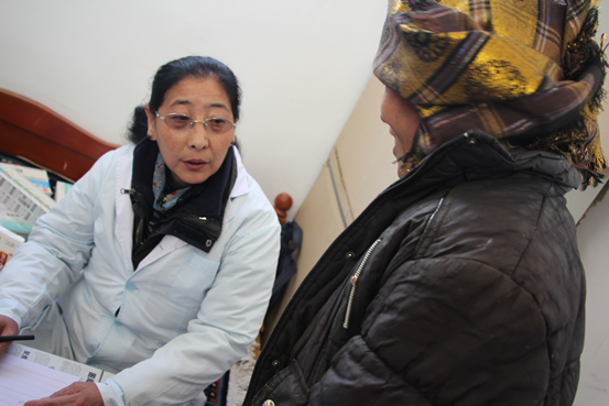 阜康醫(yī)院陳醫(yī)生 認(rèn)真的給每位到場患者測量血壓