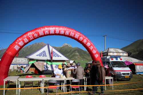 義診是西藏阜康醫(yī)院發(fā)展有限公司自成立以來就有的良好傳統(tǒng),一直保留的對老百姓有切身利益的公益活動。2015年7月20日,嘉黎縣縣政府對西藏阜康醫(yī)院及嘎布院長發(fā)出邀請,同時,又收到申扎縣縣委縣政府的真誠邀請,邀請西藏阜康醫(yī)院參加他們一年一度的盛大隆重的節(jié)日---賽馬節(jié)。這對我們來說是一份榮譽,也是一份責(zé)任。經(jīng)過董事會的批準(zhǔn),醫(yī)院多方協(xié)調(diào)準(zhǔn)備,由嘎布院長親自帶隊,內(nèi)科醫(yī)生丹增,外科醫(yī)生瓊瑪,護理組次仁,醫(yī)保辦阿珍,駕駛組巴次、小索朗共7人組成的西藏阜康醫(yī)院義診隊成立。7月25日早上8點,西藏阜康醫(yī)院義診隊帶著醫(yī)院的囑托、8萬元的藥品分別向嘉黎縣、申扎縣出發(fā)。經(jīng)過一天的長途跋涉,天黑才抵達目的地。當(dāng)晚義診隊不顧一路的顛簸勞累,馬上開始義診的準(zhǔn)備工作:搭帳篷、桌子、凳子、各種藥品的分類及醫(yī)生看病所需的器械,一直忙碌到夜里11點。