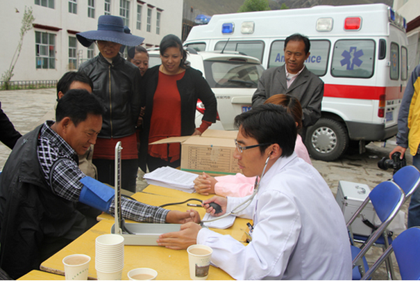 對于過為尼木縣鄉(xiāng)村小學(xué)老師們的體檢,董發(fā)善醫(yī)生說:“大部分老師都患有血管神經(jīng)性頭疼和不同程度的胃病和膽囊疾病。這是由于在鄉(xiāng)村學(xué)校中,老師們工作繁忙,經(jīng)常忘記吃飯或者到了吃飯的時候就湊合吃幾片風(fēng)干肉,喝幾杯酥油茶。這是造成鄉(xiāng)村老師腸胃和膽囊疾病的原因。此外,由于老師們經(jīng)常站著講課,腰椎疾病的患病率比其他行業(yè)的要高。”在體檢的同時,醫(yī)護(hù)人員還向老師們發(fā)放了常見疾病預(yù)防知識的宣傳材料。