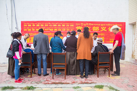 為深入貫徹落實(shí)黨的群眾路線政策,用實(shí)際行動(dòng)推進(jìn)“兩學(xué)一做”學(xué)習(xí)教育開展,2016年5月22日上午,西藏阜康醫(yī)院心腦血管分院及體檢中心黨支部組織了一支由醫(yī)、技、護(hù)組成的6人醫(yī)療隊(duì)走進(jìn)仙足島生態(tài)園小區(qū)開展主題為“提高居民健康素養(yǎng),構(gòu)建幸福和諧生活”的義診活動(dòng)。