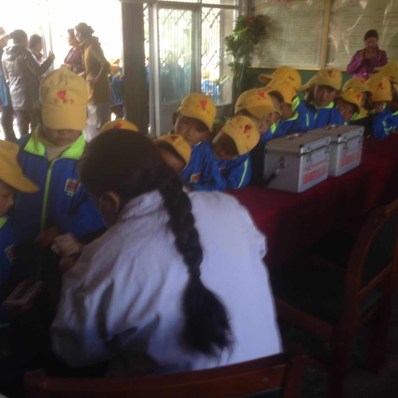 31日上午8點(diǎn)半左右,西藏阜康醫(yī)院社區(qū)義診隊兩名主要成員才仁、卓瑪次仁乘坐義診專用車,載著價值25000元左右的藥品,從拉薩市區(qū)出發(fā)前往墨竹工卡縣甲瑪鄉(xiāng)中心小學(xué)。經(jīng)過1個小時40分鐘的顛簸路程,本報記者會同義診隊終于抵達(dá)目的地。盡管現(xiàn)場下起了小雨,但這始終沒有阻擋孩子們的熱情,甲瑪鄉(xiāng)中心小學(xué)的285名小學(xué)生正在學(xué)校教學(xué)樓前,耐心等待義診隊的到來。10點(diǎn)10分左右,孩子們在老師的引導(dǎo)下依次接受體檢,醫(yī)生為他們檢查了口腔、腹腔、測量心跳,并發(fā)放了藥品。一個個溫馨友善的提醒,一盒盒充滿愛意的藥品,都讓孩子們感受著全社會的關(guān)愛。