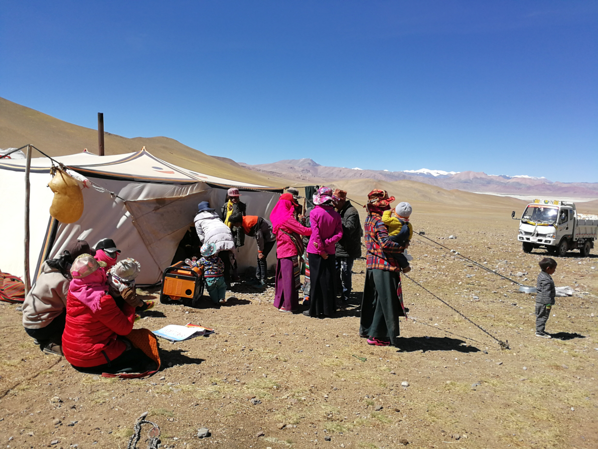 我仔細觀察四組前來的牧民,不管大人小孩,衣服都是干干凈凈的。那普居委會由李毛措主任團隊駐村管理,那普居委會是本地的示范居委會,因為政府管理得當,衛(wèi)生安全普及到位,居委會傳染病、包蟲病的感染人數(shù)很少。他告訴我,牧民們要穿戴干凈、講衛(wèi)生其實很難,他們要到很遠的地方才有水源,而且天氣惡劣寒冷,洗衣服都是一件困難的事情。