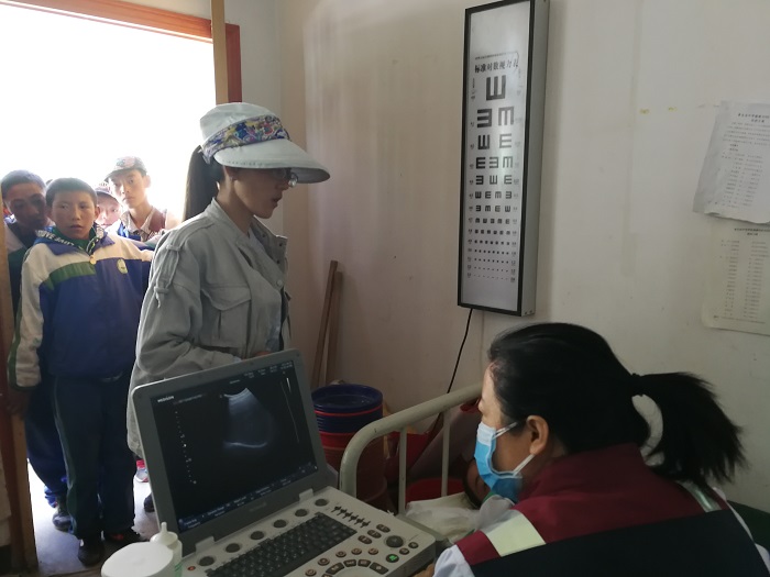 ●衛(wèi)生局局長(zhǎng)次巴珠組織學(xué)生進(jìn)行B超檢查 · 現(xiàn)場(chǎng)圖片