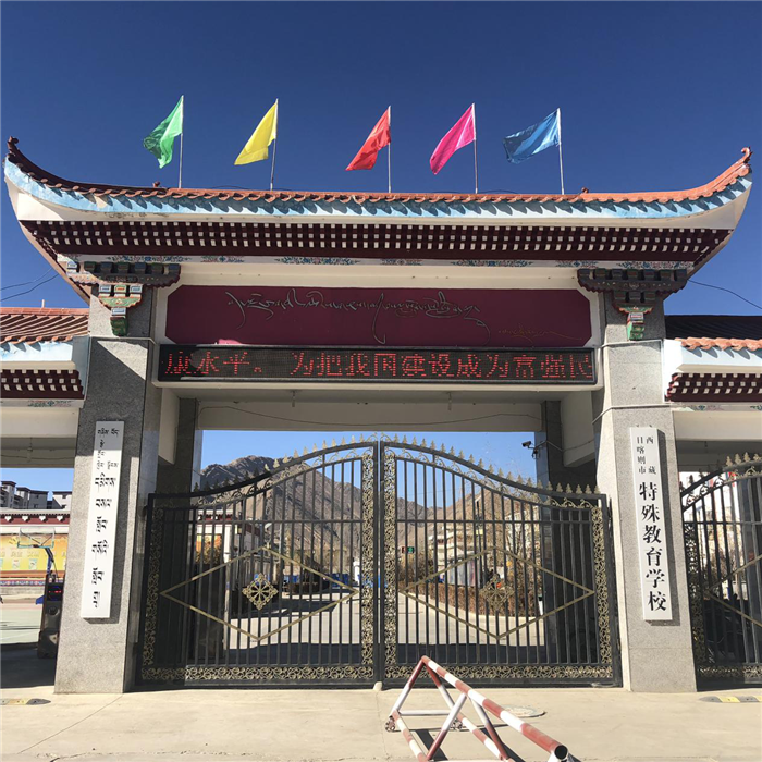 日喀則市特殊教育學(xué)校于2008年開始籌備,2010年正式招生,主要招生對象是日喀則18個(gè)縣區(qū)和阿里地區(qū)的聾啞、盲、智障的孩子,學(xué)校現(xiàn)有14個(gè)教學(xué)班,在校學(xué)生225人。學(xué)校提供九年義務(wù)教育和基礎(chǔ)職業(yè)技能培訓(xùn),實(shí)行封閉式管理。