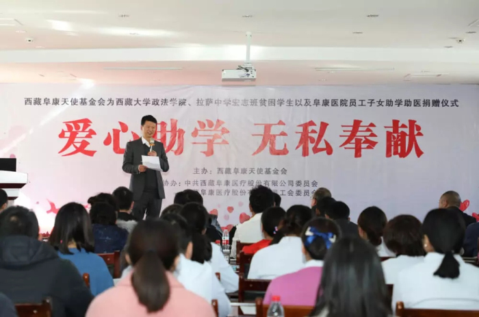 11月28日下午3點(diǎn),“西藏阜康天使基金會(huì)助學(xué)助醫(yī)捐贈(zèng)儀式”在西藏阜康醫(yī)院婦產(chǎn)兒童分院四樓會(huì)議室舉行。西藏阜康天使基金會(huì)理事長(zhǎng)、西藏阜康醫(yī)療股份有限公司黨委書記、董事長(zhǎng)王斌,西藏大學(xué)政法學(xué)院黨委書記羅布,拉薩中學(xué)校長(zhǎng)陳飛,受助學(xué)生家長(zhǎng)代表,受助學(xué)生代表以及阜康醫(yī)療相關(guān)領(lǐng)導(dǎo)出席了本次會(huì)議。會(huì)議由西藏大學(xué)政法學(xué)院張昊文主持。