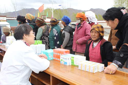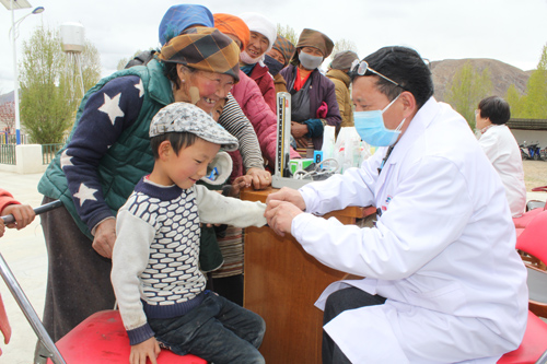 2015年4月29日,西藏自治區(qū)老年干部中心聯(lián)合西藏阜康醫(yī)院婦產(chǎn)兒童分院開展“送醫(yī)送藥,愛心義診”活動(dòng)。醫(yī)院共派出內(nèi)科、婦科、B超室三名醫(yī)生及一名護(hù)士攜帶相關(guān)醫(yī)療器械及藥品赴貧困的林周縣色康村進(jìn)行愛心義診。