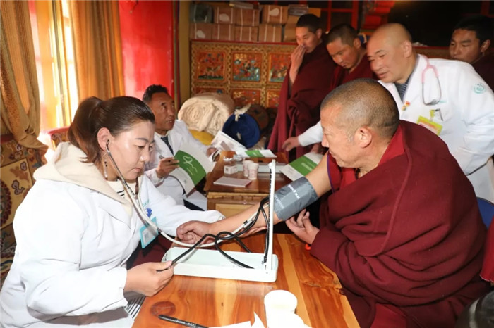 據(jù)了解,甘丹寺管委會(huì)安排223名僧侶于2019年12月19日至2020年1月15日來我院體檢中心分批進(jìn)行了身體檢查,為了方便僧侶們?nèi)∽x報(bào)告,西藏阜康醫(yī)院秉持著“用我們的知識(shí)和良知為人類健康服務(wù)”的企業(yè)宗旨,特意安排專家義診組帶著大家的體檢報(bào)告來到寺廟,為大家免費(fèi)進(jìn)行報(bào)告解讀并針對(duì)性的發(fā)放藥物。