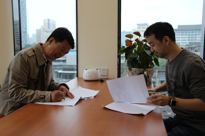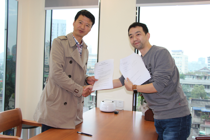 王斌董事長(zhǎng)與成都義幻醫(yī)療科技有限公司周小華總監(jiān)簽署合作協(xié)議