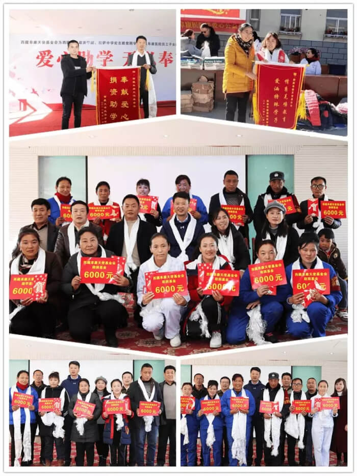 2018年2月11日,西藏阜康天使基金會和西藏阜康醫(yī)院黨委、工會,在新春佳節(jié)來臨之際慰問困難群眾和員工,根據(jù)困難程度分別發(fā)放6000元、12000元、60000元不等的慰問金。同年11月,“西藏阜康天使基金會助學(xué)助醫(yī)捐贈儀式”在阜康婦產(chǎn)兒童分院舉行,在本次捐贈儀式上,西藏阜康天使基金會為西藏大學(xué)政法學(xué)院30名貧困學(xué)生,每人捐助4000元的生活補(bǔ)貼,總金額為120000元人民幣。通過這些幫扶活動幫助了貧困員工、貧困群眾和學(xué)生走出困境、重塑生活,為他們生活注入了新的希望。