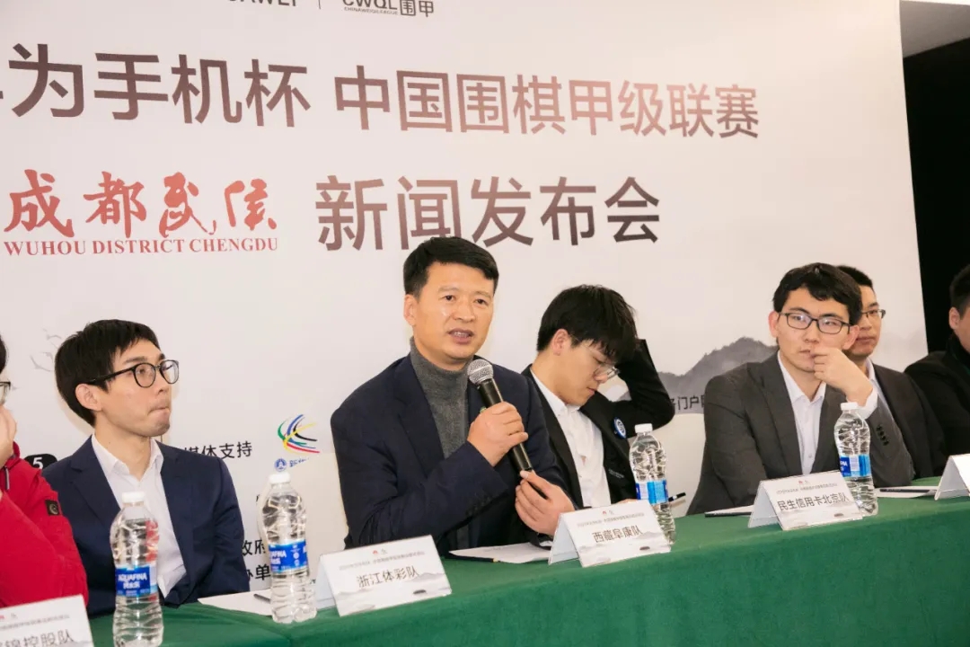 7日晚,2020華為手機(jī)杯中國(guó)圍棋甲級(jí)聯(lián)賽第二階段成都武侯分站賽第十輪賽后發(fā)布會(huì)于成都東方美豪麗致酒店舉行。中國(guó)圍棋協(xié)會(huì)副主席、棋圣聶衛(wèi)平,中國(guó)圍棋協(xié)會(huì)副主席、國(guó)家圍棋隊(duì)總領(lǐng)隊(duì)華學(xué)明及第十輪勝出的八支棋隊(duì)的代表出席了發(fā)布會(huì)。拉薩棋院院長(zhǎng)、西藏自治區(qū)圍棋協(xié)會(huì)主席、西藏阜康隊(duì)領(lǐng)隊(duì)王斌出席會(huì)議并代表發(fā)言。