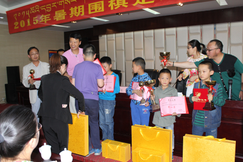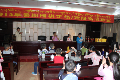7月28日, 拉薩市2015年暑期圍棋定級(jí)/定段賽頒獎(jiǎng)儀式在拉薩棋院三樓會(huì)議室召開,出席嘉賓有拉薩棋院院長王斌、拉薩棋院秘書長及職業(yè)圍棋隊(duì)教練陳盈女士、拉薩棋院圍棋部副主任趙鈞、棋院老師陳學(xué)滸及本次參賽的學(xué)生和家長。首先王斌院長代表拉薩棋院歡迎大家的到來。從今年4月26日拉薩棋院成立到現(xiàn)在不到半年的時(shí)間,就已經(jīng)在5月1日、2日成功的舉辦了“2015春季‘阜康杯’拉薩市少兒圍棋定級(jí)賽”,并得到了各界的大力支持和認(rèn)同。為了改善棋手們的學(xué)棋環(huán)境,棋院又投資數(shù)萬元購置棋桌、棋盤等設(shè)施,棋院在每間教室的休息區(qū)均安裝了WiFi。據(jù)王斌院長介紹,棋院準(zhǔn)備接下來培養(yǎng)更多的圍棋老師到各大幼兒園、小學(xué)教授圍棋,待辦學(xué)條件成熟還可能增加書法等項(xiàng)目,讓西藏的適齡小孩得到更多的琴棋書畫的熏陶及教育。