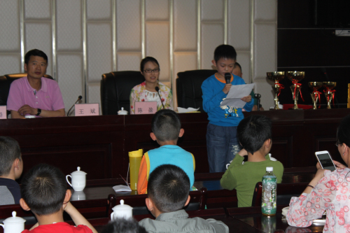 最后由小棋手代表許蘇陽發(fā)言,首先感謝了為拉薩棋院辛勤奔波的王斌院長,感謝拉薩棋院為他們搭建了這樣一個(gè)良好的學(xué)習(xí)平臺(tái)與機(jī)會(huì),是老師交給了他圍棋這一項(xiàng)本領(lǐng),是老師給了這次比賽的機(jī)會(huì),同時(shí)感謝父母支持學(xué)圍棋,感謝叔叔阿姨對(duì)我們的鼓勵(lì)與支持。黑白世界,精彩人生,學(xué)習(xí)圍棋的好處很多,大大增加了小棋手的信心,它能讓小棋手們平靜下來細(xì)細(xì)思考,能讓小棋手們學(xué)會(huì)等待、改掉急躁的壞毛病。