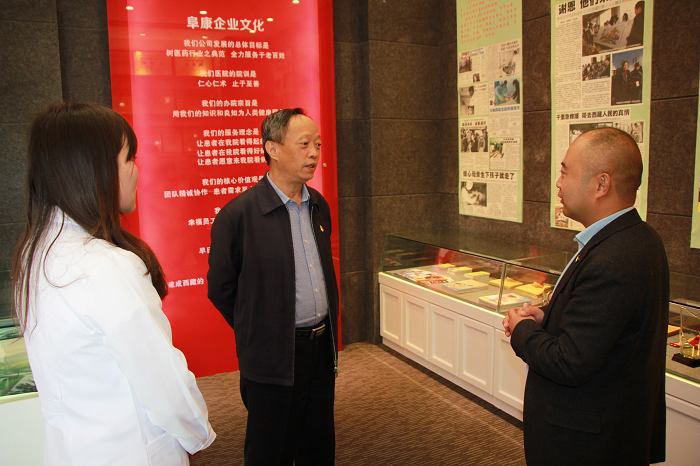 在阜康醫(yī)院五樓院史館,劉連福向劉家杰一行介紹了阜康醫(yī)療不平凡的發(fā)展歷程以及阜康人在黨的建設(shè)、抗震救災(zāi)、公益事業(yè)、企業(yè)文化等方面的成就,劉家杰一行對(duì)阜康醫(yī)療各方面的工作表示充分認(rèn)可并對(duì)“阜康”中所含的物阜民康——“物產(chǎn)豐富,民族安康”之意表現(xiàn)出極大的興趣,希望通過阜康人在醫(yī)藥領(lǐng)域的不懈努力,勇于攀登醫(yī)學(xué)高峰,為西藏的醫(yī)療發(fā)展貢獻(xiàn)力量。
