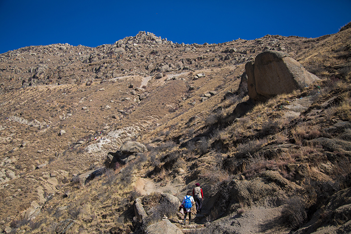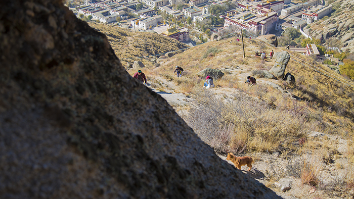 按照既定路線,我們沿著色拉寺的轉(zhuǎn)經(jīng)道到達(dá)了后山,開(kāi)始向我們的第一個(gè)目標(biāo)——色拉烏茲進(jìn)發(fā)。