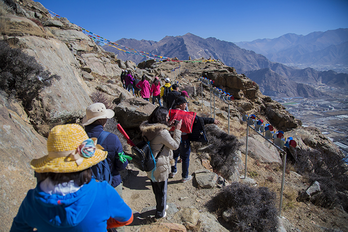 為保證參加活動(dòng)人員的人身安全,支部對(duì)參加人員著裝、隨身攜帶物品等做出了明確規(guī)定,所有人從阜康婦產(chǎn)兒童分院集合統(tǒng)一出發(fā)驅(qū)車前往色拉寺。我們將人員分為三隊(duì),為保證體力給大家發(fā)放了水果、水、巧克力等,同時(shí)還給帶隊(duì)的小組長(zhǎng)分發(fā)了垃圾袋,鑒于西藏脆弱的生態(tài)環(huán)境,為保護(hù)大山環(huán)境,我們要求所有人員把爬山過(guò)程中產(chǎn)生的垃圾,和以前轉(zhuǎn)山者遺留下的垃圾一并帶走,為環(huán)境保護(hù)貢獻(xiàn)自己微小的力量。