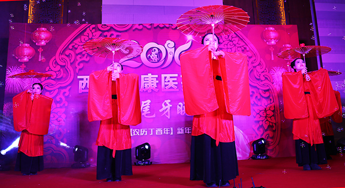 隨后阜康醫(yī)藥年終尾牙晚會(huì)正式開始,優(yōu)雅古典的《禮之舞》、幽默詼諧的《碰瓷》、歡快的《青春踢踏》、令人警醒的《手機(jī)綜合癥》、活潑性感的《百老匯》伴隨著激動(dòng)的百元紅包、希諾水杯、微波爐、ipad抽獎(jiǎng)活動(dòng)一次次把晚會(huì)推向高潮。